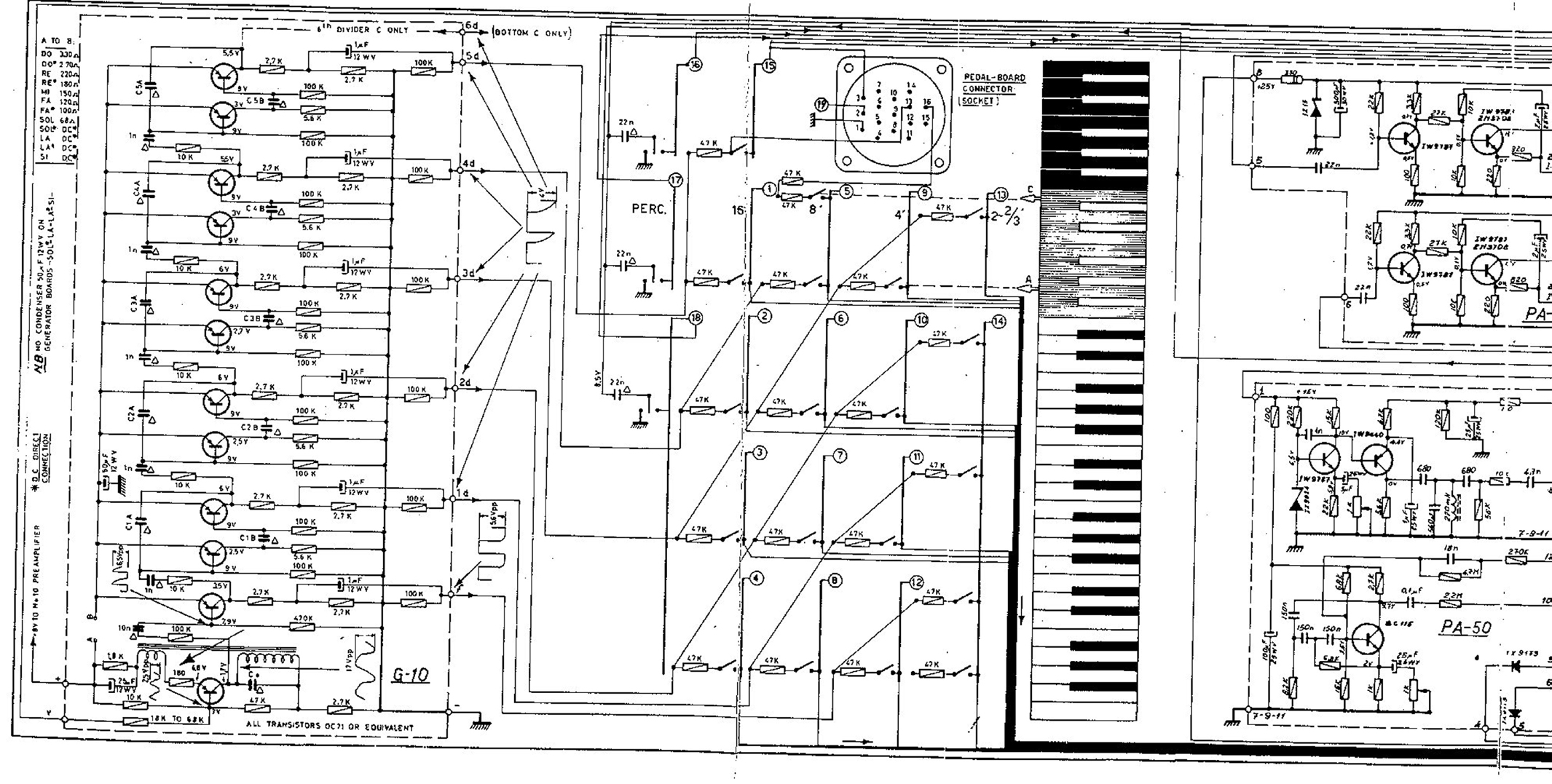 Ok, my new schematic disclaimer: Don’t be dumb, and be careful not hurt yourself if you are attempting to work on your organ. You should find a tech to work on your gear, really. That way he can do what he does, and you can do what you do, make music!