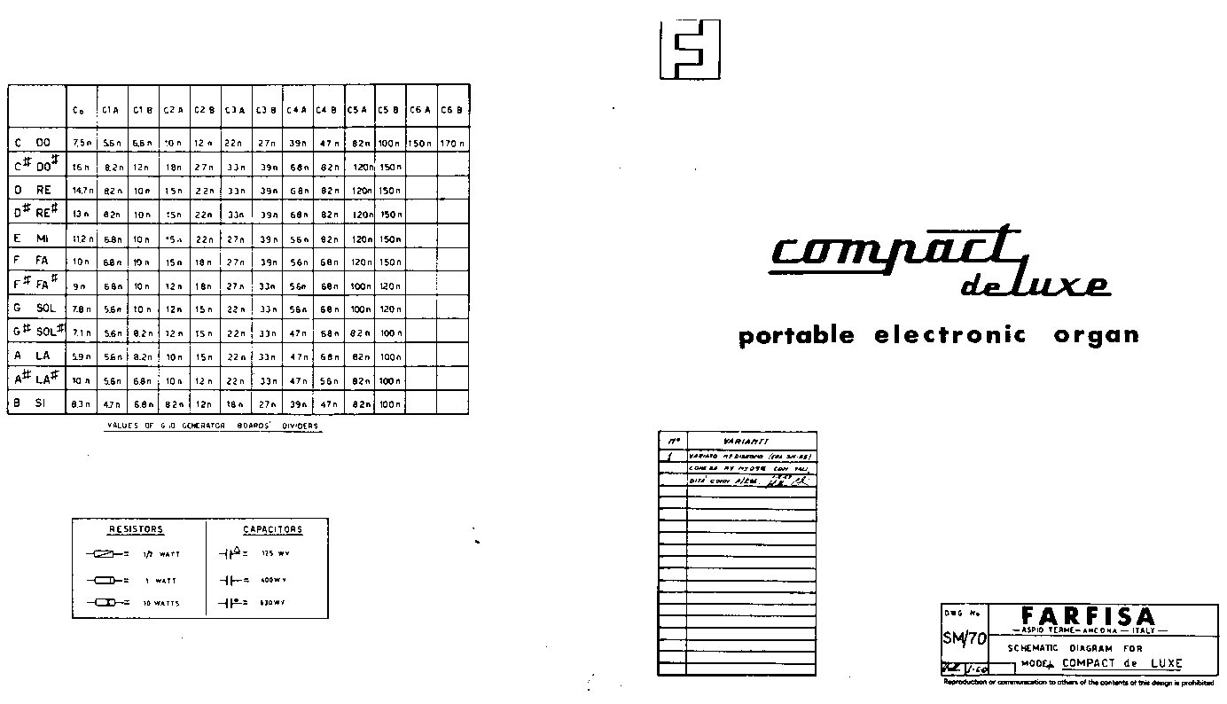I have no idea why you would want to look at these, but you do, so here they are! The Compact Deluxe Schematics are an incredible display of little black and white drawings on paper that empower you to understand the inner workings of the magnificent Farfisa Compact Deluxe combo organ, if you speak early sixties Italian electronic physicist speak.