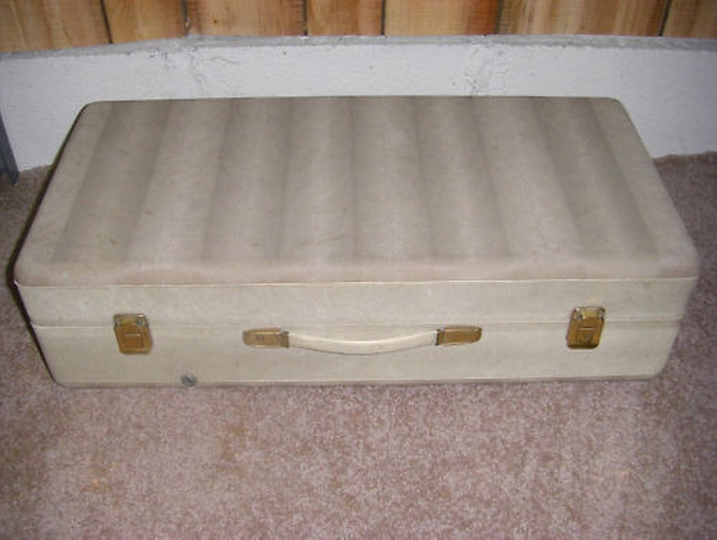 This is an extremely rare Farfisa 8, 8 watt tube practice amp for guitar, ez81 rectifier, single el84 power tube, and two ecc83 preamp tubes, has volume, tone, and superb vibrato. Speakers are two 6″ Quam alnicos (not original). The amp has been totally gone through by one of Portland’s best tube techs, and has new filter caps. He also put in a new, custom wound, power transformer because the last one was non original and not a good match for this amp. The sound is a warm tube sound, fairly clean with single coils, more breakup with humbuckers. Just on its own, it is a fairly unremarkable amp, but once you put a boost in front of it, it becomes a wailing tone monster. I used a Zendrive with it and got great sounds. As I say, the vibrato is also very clear and cool. As you can see, there are some tears in the speaker cloth and some scuffs, but over all it looks quite good.