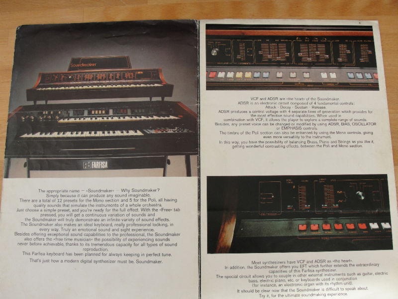 I’m including the original Service Manual, a Sales Brochure, a Brochure/Manual and a patch guide called ‘Some Registrations’ (it’s that organ-based theme again!)