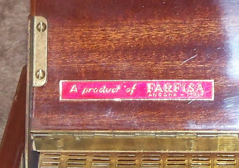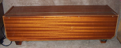 Here’s a new one that I haven’t seen before, the Farfisa Organtone. Looks exactly like the previously mentioned Pianorgan (and Royal Artist Piano), but instead of nice Quartersawn White Oak, it is made out of what looks like nicer Santos Mahogany!